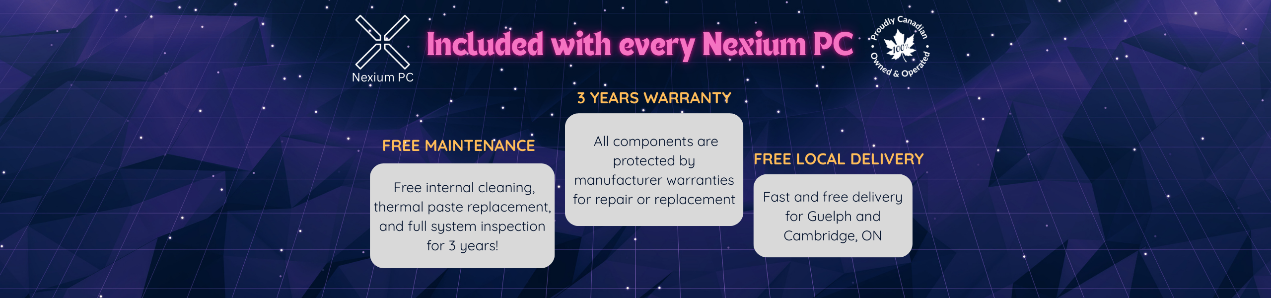 Absolutely. All Nexium PCs include a 3-year limited warranty on parts and labour, plus any manufacturer warranties that apply to individual components. We stand behind every system we build.